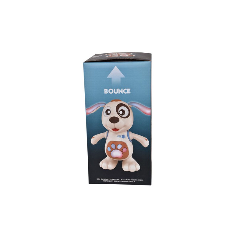 Танцуващото куче има светлинни ефекти, блестящи уши и коремче.