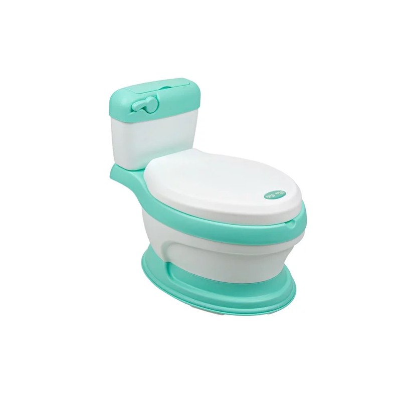 То е досущ, като гърнето в тоалетната, което ползват мама и тати - има си капак, седалка, даже и казанче с кранче за водата!