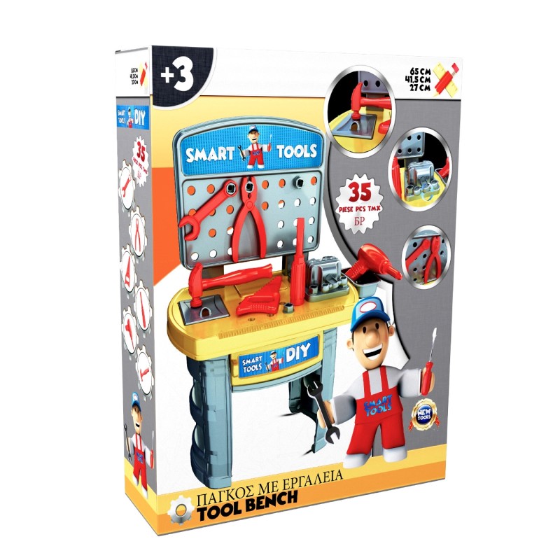 Детска занимателна играчка - работилница с 35 различни аксесоара и инструменти: чук, отвертка, гаечен ключ, трион, клещи, бормашина и много други.