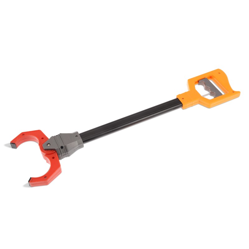 Детска играчка - миханична ръка на робот със звук, изработена от плътна и трайна пластмаса в жълто и червено.