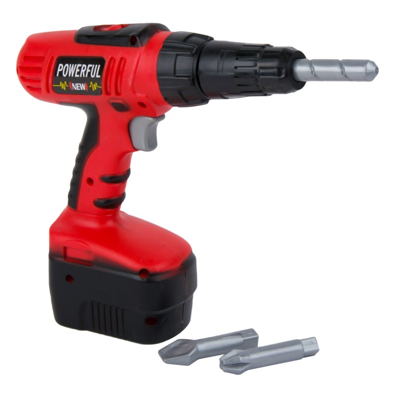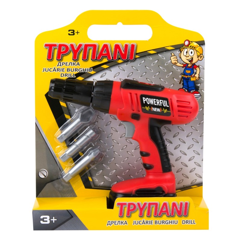 Детска играчка дрелка (винтоверт), изработена от здрава и устойчива пластмаса в червено и черно с три различни накрайника, звук и вибрация.