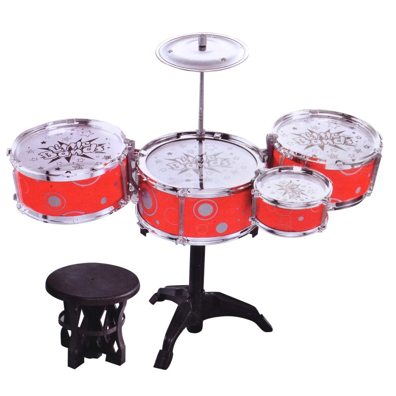 Детски музикален комплект барабани от 4 барабана, чинели и столче.