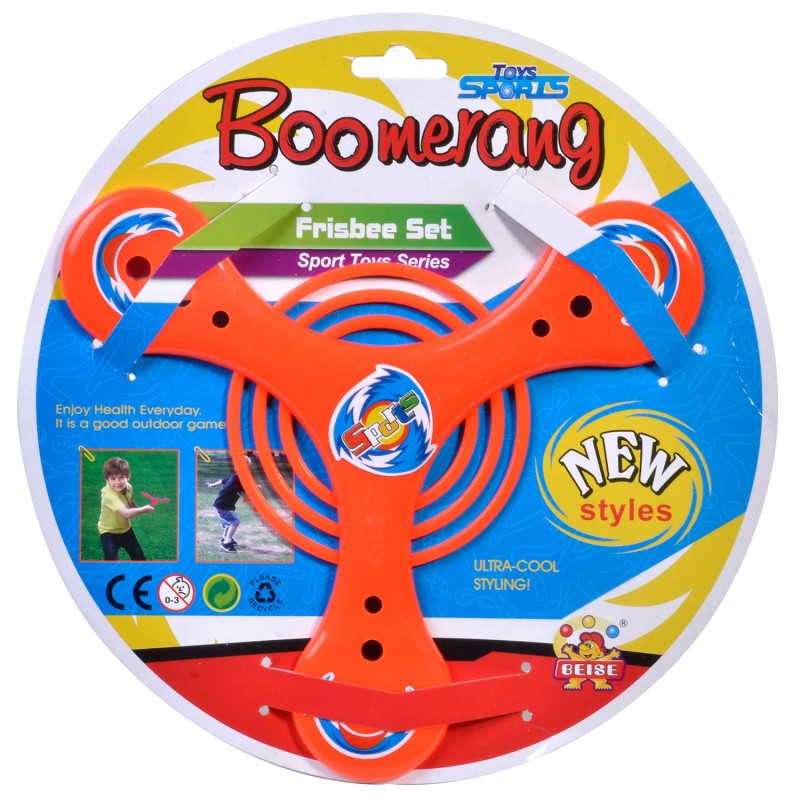 Бумеранг-фризби с три рамена, идеален за деца и начинаещи, напълно безопасен.