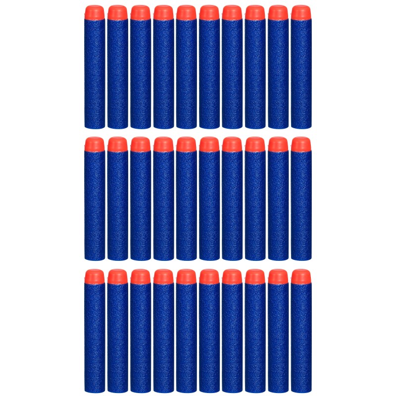 Комплект от 30 броя резервни патрони NERF N-Strike Elite, изработени от мека и безвредна пяна в син цвят.