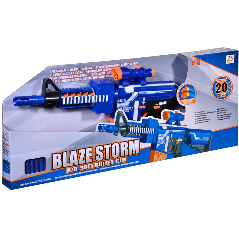 Голям космически автомат, изработен от качествена пластмаса в син цвят + 20 меки патрона за изстрелване от пяна.