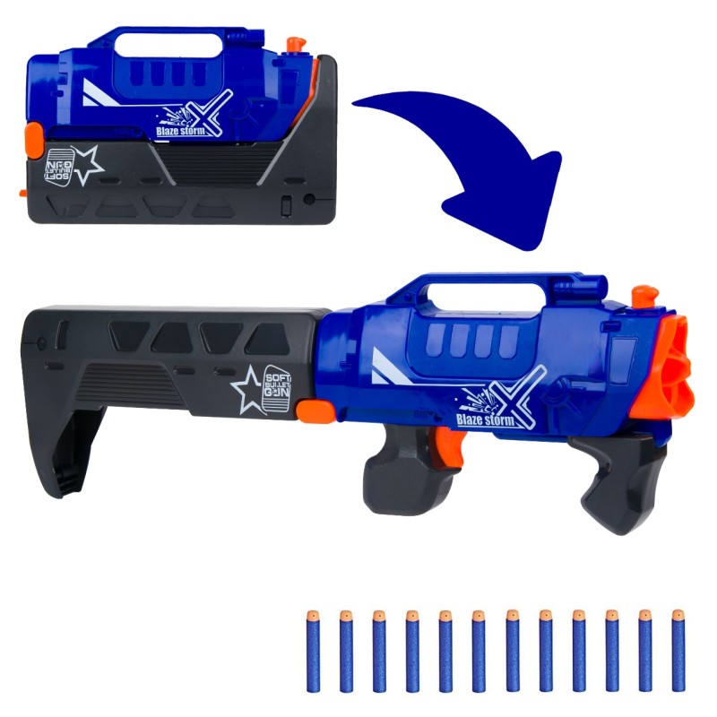 Космическа базука, изработена от качествена пластмаса в ярки цветове + 20 патрона за изстрелване от пяна.