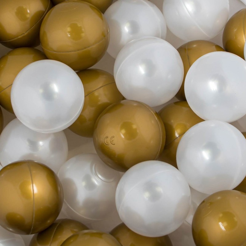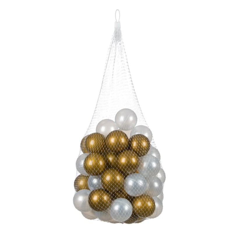 Голям комплект от 50 броя топчета за игра, изработени от здрава и безвредна пластмаса в бяло и златисто.