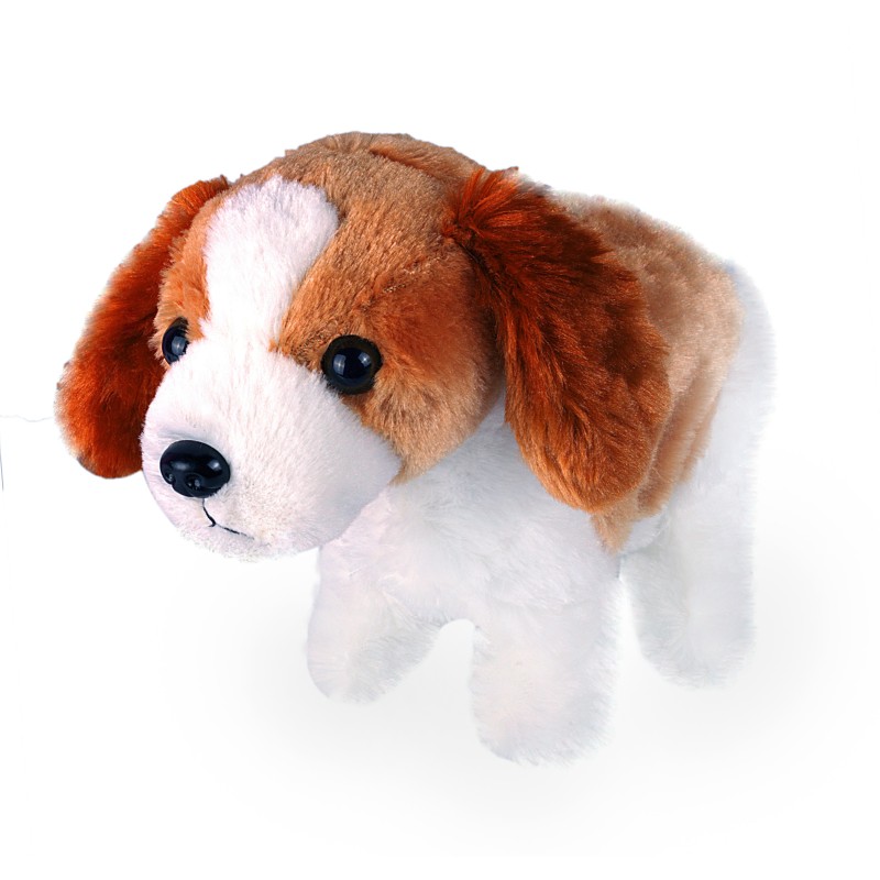 Интерактивна плюшена играчка куче в кафяви и бели окраски с движение.