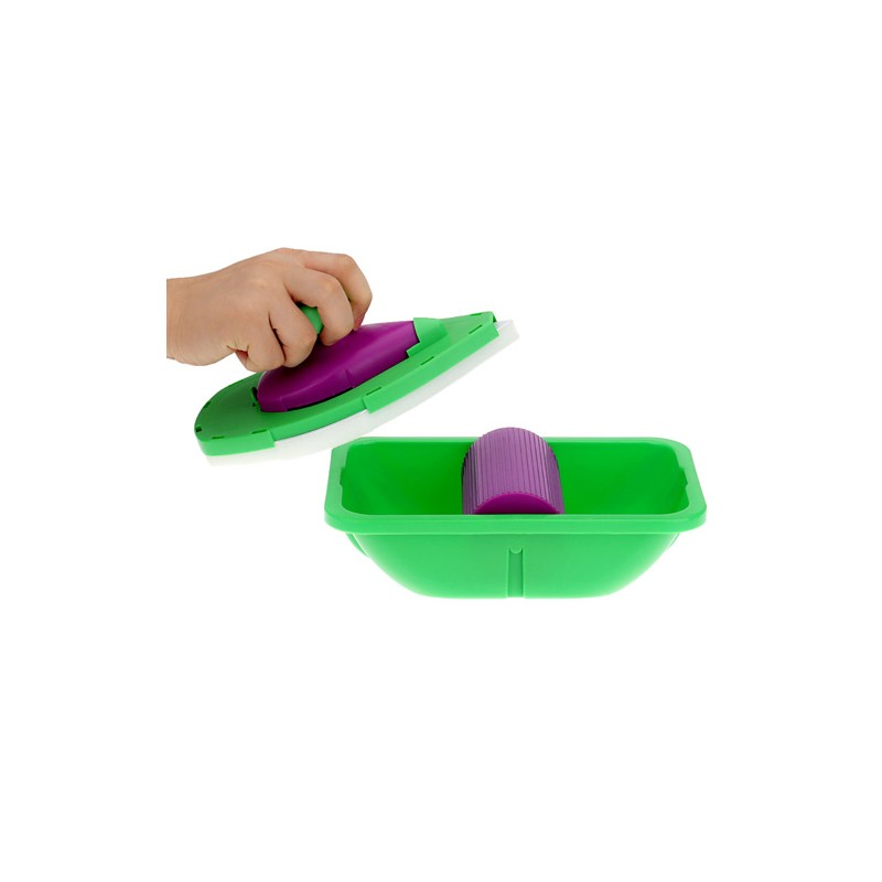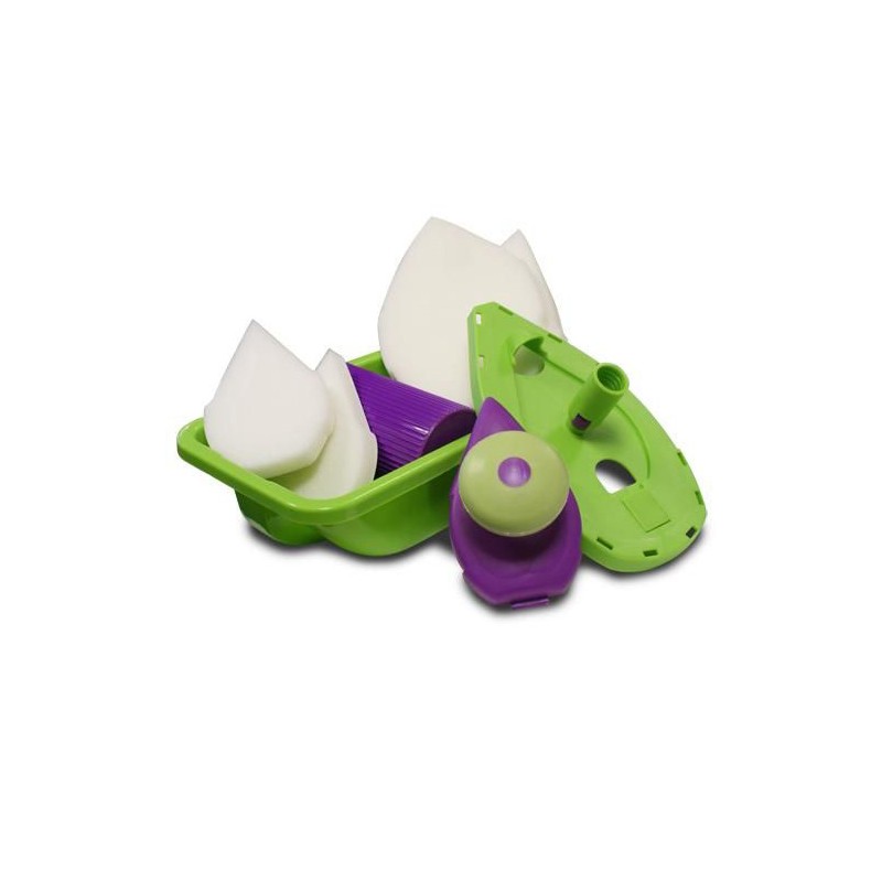 - Системата използва специален безкапков апликатор и специални подложки, които задържат до 5 пъти повече боя от обикновена ролка за боядисване и придават гладък завършек при използване.