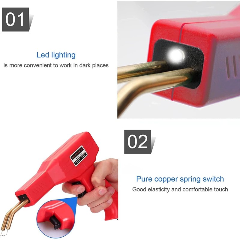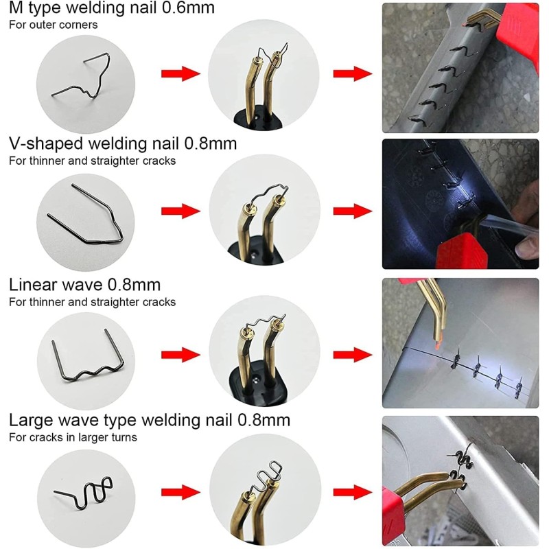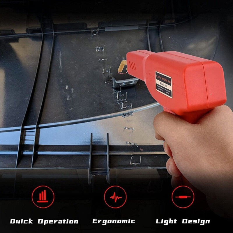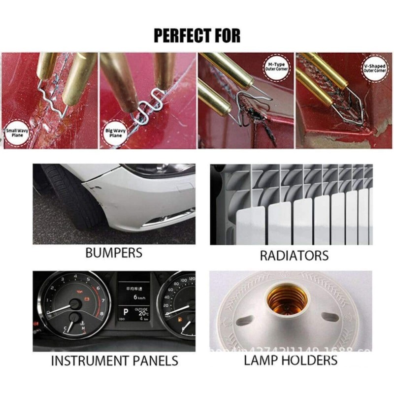 Уреда е идеален за бързо и лесно лепене на напукани и повредени пластмасови части като брони, фарове и сглобки на фаровете, щипки за панели, пластини, пластмасови щифтове, спойлери и др. на автомобили, мотоциклети, ATV, лодки