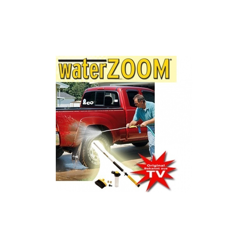 Water Zoom е мощна водоструйка за почистване, която превръща всеки градински маркуч в преносима и лека система за почистване. Тази универсална пръскачка е снабдена с иновативна технология за компресия на водата, която създава мощна водна струя с обикновен градински маркуч. Просто я прикрепете към маркуча, пуснете водата и нагласете желаното налягане и почистваща сила. Резултатът е мощна пръскачка, която почиства като професионалните уреди.