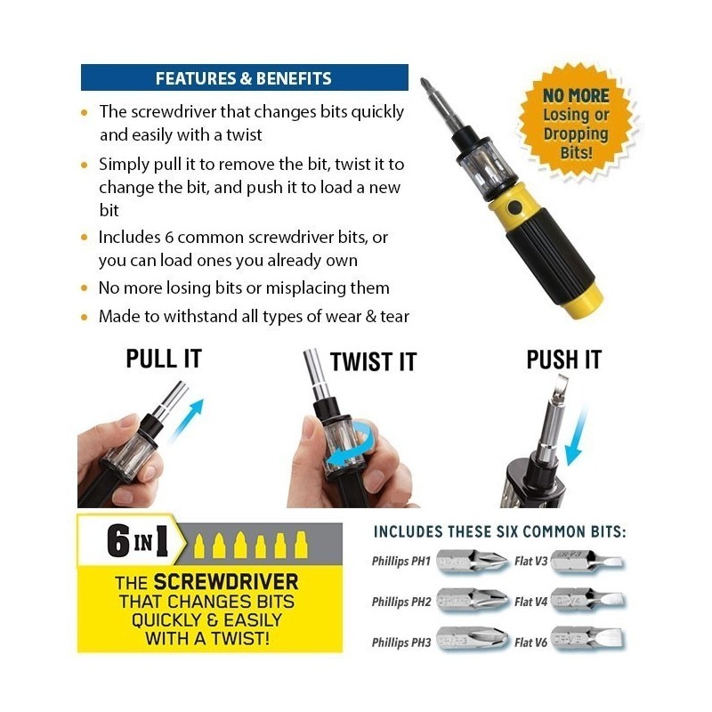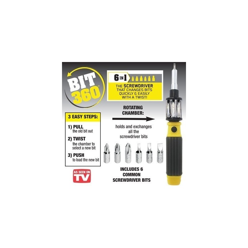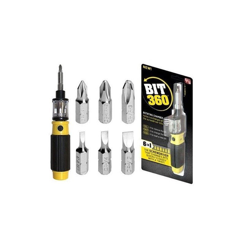 Мултифункционалната отвертка с приставки Bit 360 е уникален инструмент, който ще ви помогне във всяка работа по дребните ремонти у дома. С тази отвертка, няма да имате нужда от майстор или от повече от един инструмент, защото тя разполага с шест различни приставки, които ще ви дадат всичко, от което се нуждаете.