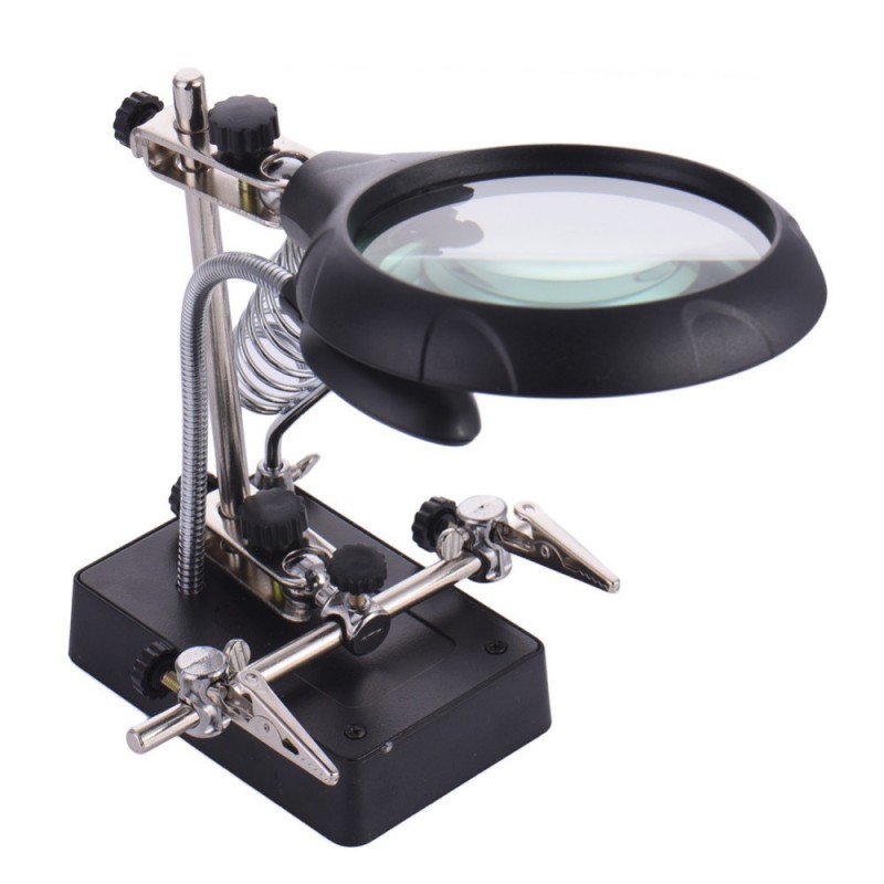 Работейки с малки предмети, като запоявате части или микросхеми, често се сблъсквате с предизвикателството да се справите с две ръце. За щастие, сега имате решение - настолната лупа с LED лампа, трета ръка и увеличителни лещи. Тя е идеалната помощник, който ще ви осигури удобство и прецизност по време на работа.