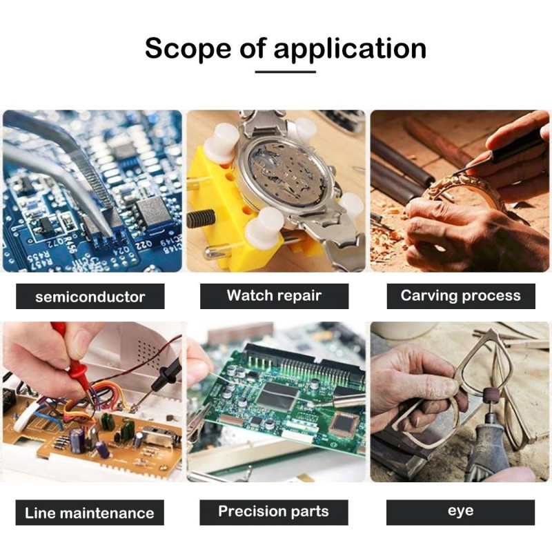 Осигурете си перфектни условия за работа с малки предмети с лупи за глава с различни увеличения, модел 81007. Този комплект включва лупа за глава с увеличения 1.5X, 3X, 6.5X, 8X и лед фенер, за да можете да изберете най-подходящото увеличение за вашите нужди. Също така, лупата е оборудвана със светодиодно осветление, което осигурява ясна и ярка светлина в работната зона.