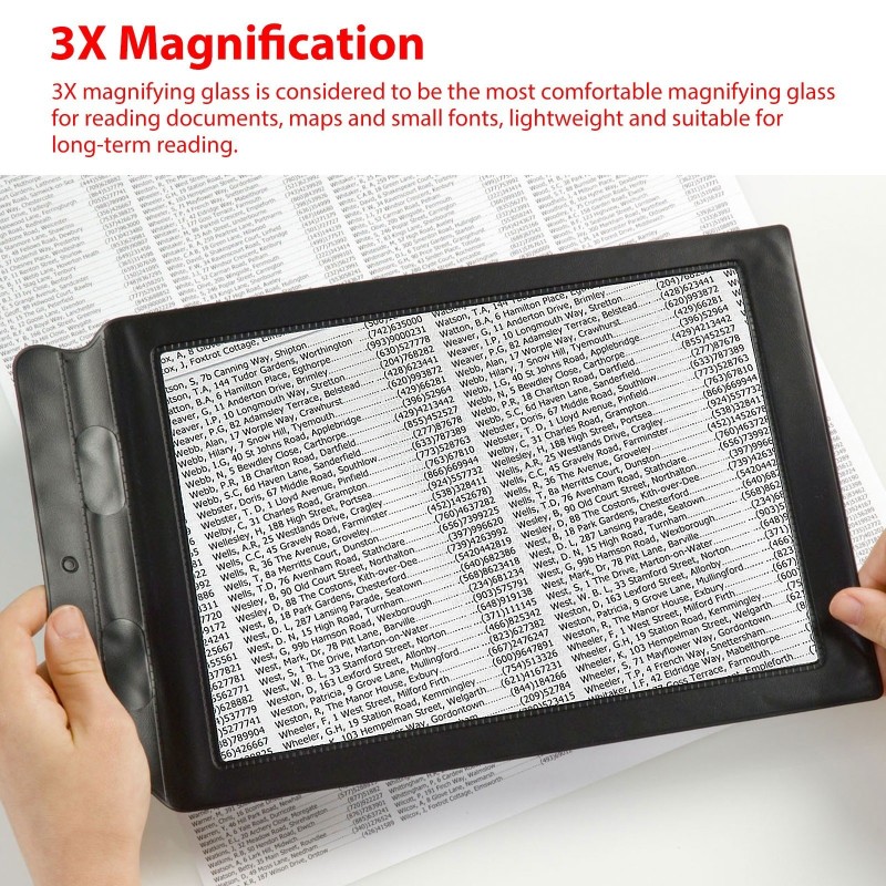 Увеличителният стъклен екран има удобен размер и форма, които ви позволяват да четете големи текстови полета. Той увеличава зрителното поле с 3 пъти, осигурявайки ви ясно и подробно виждане.