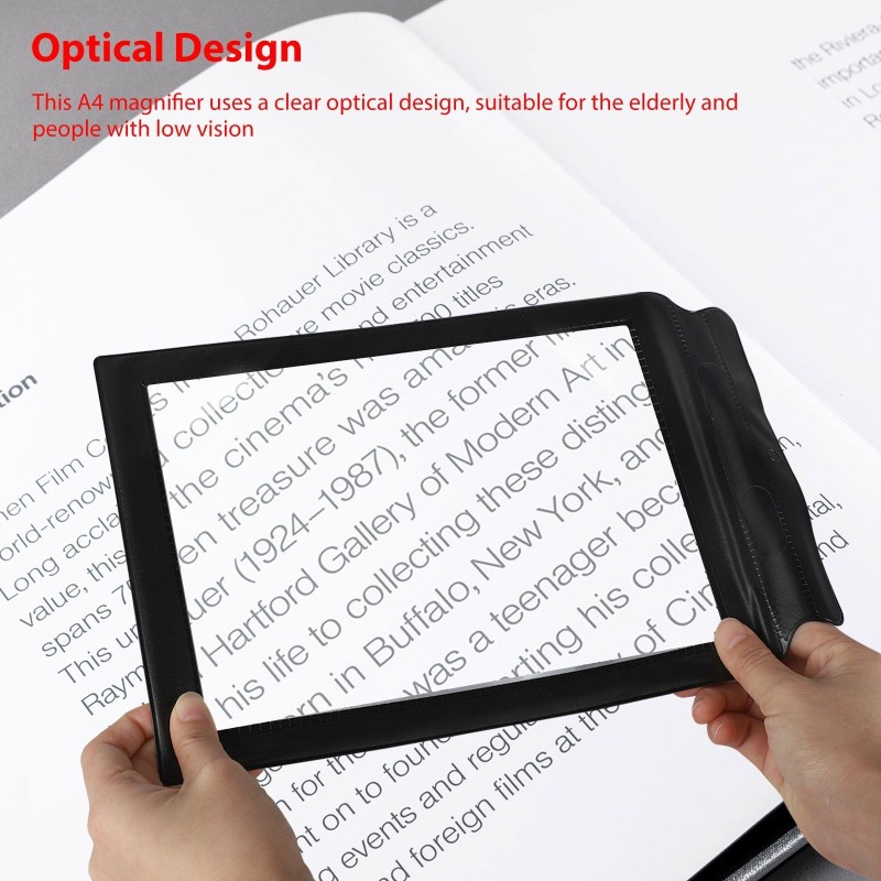 Представяме ви гъвкав увеличителен екран за четене на книги с размер A4. Този увеличителен пластмасов екран е идеален за разглеждане на печата, бележки, монети, печати, карти, директории и документи. Неговото практично и удобно увеличително стъкло ще улесни вашето ежедневие. Това е перфектният подарък за възрастни и хора с лошо зрение.