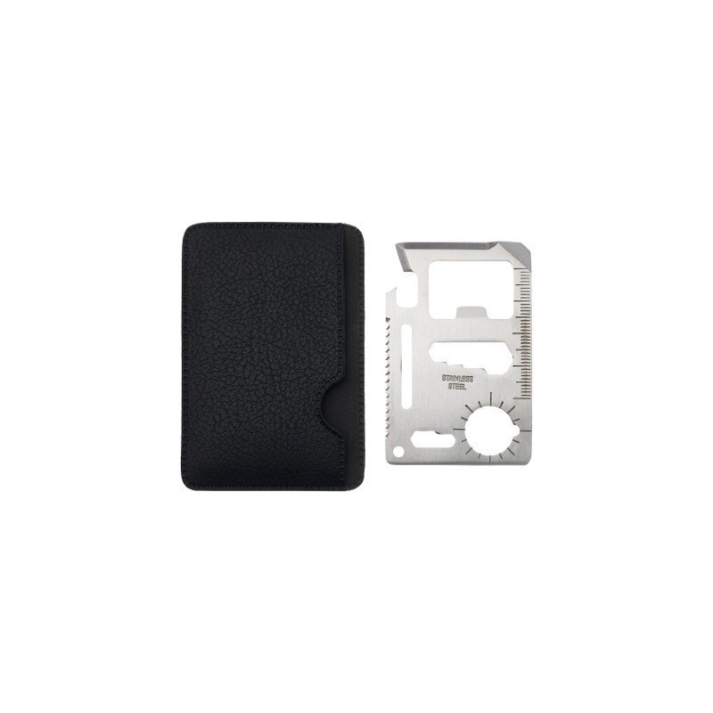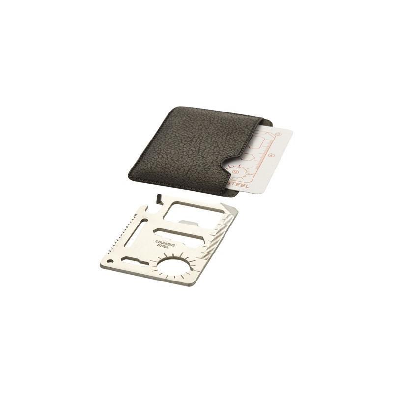 Неръждаемата стомана, от която е изработен инструментът, гарантира неговата здравина и издръжливост. С него ще получите 15 различни функции, които ще ви помогнат в спешни случаи. Имате отварачка за консерви и бутилки, нож за рязане на въжета, колани или плодове. Можете да използвате и отвертка, 4-позиционен гаечен ключ, гаечен ключ за малки винтове, гаечен ключ за плоски винтове или острие за рязане на твърди предмети. Инструментът разполага също с линейка в cm и mm, индикатор за посоката и отвор за закачане на ключове.