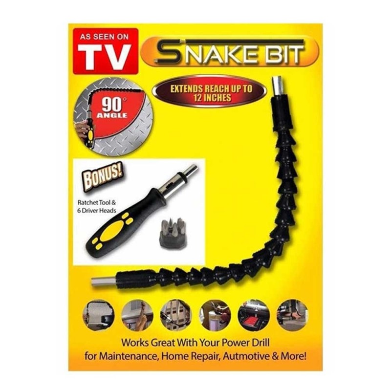 Професионалната отвертка с удължител до 30см, което прави недостъпните места достъпни. Професионалната отвертка Snake Bit притежава гъвкаво 30- тяло, което може да се завие във всяка посока, за да достигне до труднодостъпни и тесни места. Прикрепва се бързо и лесно дори към електрическите бормашини. Отвертката е перфектна за водопроводчици, монтьори, мебелисти, домашни и за всички други майстори, които често боравят с отвертки. Отвертката Snake Bit е снабдена с универсален удължител, тресчотка и 6 различни приставки.