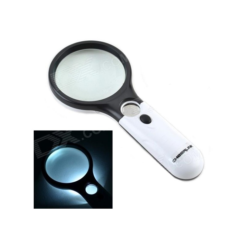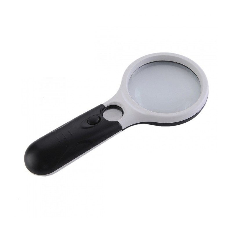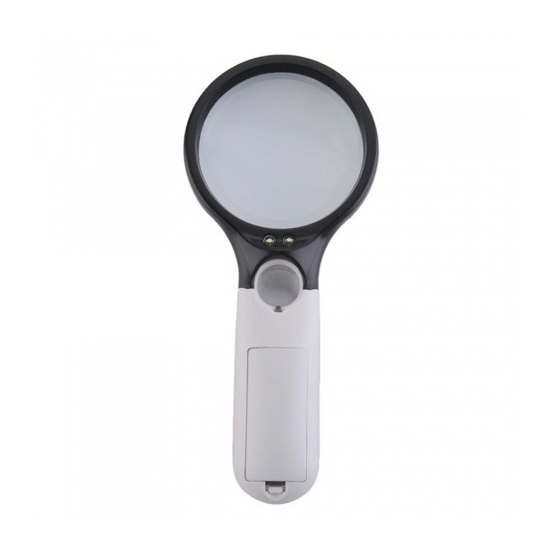 Удобна ръчна лупа с голямо приближение и LED светлина. Има и вградена малка лупа за допълнително вглеждане.