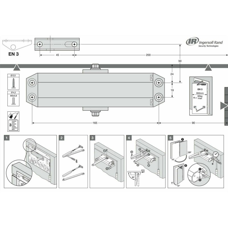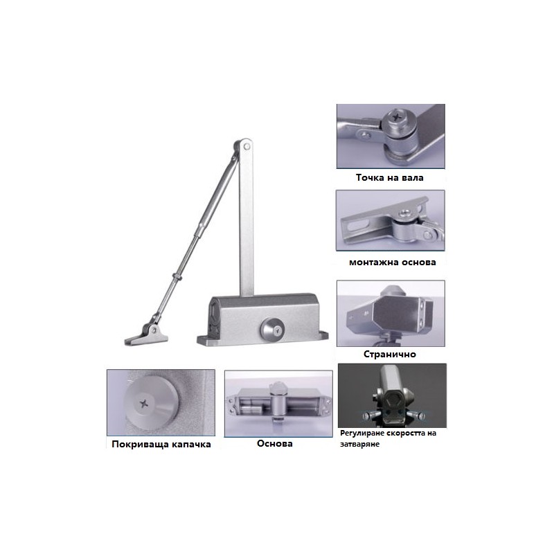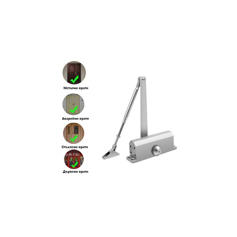 Подходящ както за отваряне, така и за затваряне (бутане и дърпане). Може да бъде монтиран (наляво и надясно) на дървени, стъклени, аварийни или метални врати до 90 килограма.