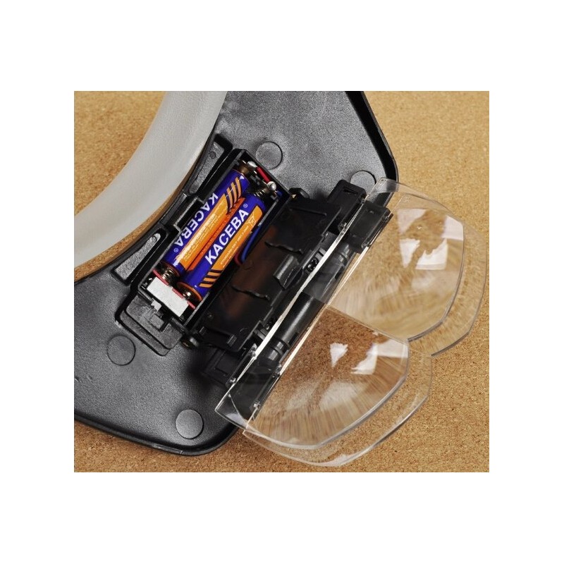 Регулируема козирка - универсална за всяка глава. Притежава вградени очила със сменящи се лупи и LED светлина раположена в горната част.