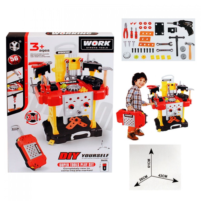 Атрактивен подарък за Вашето дете. Детски кът с инструменти подходящ за младите майстори. С този комплект детето ви ще може да майстори и ремонтира без риск от нараняване. Осигурете желаната работилцина на вашето момче!