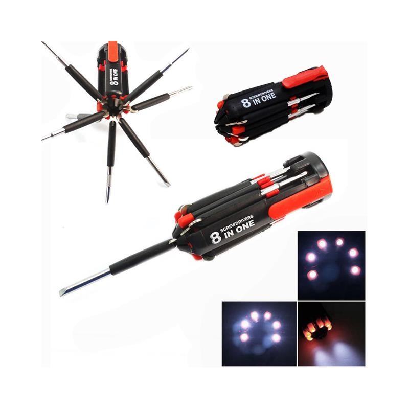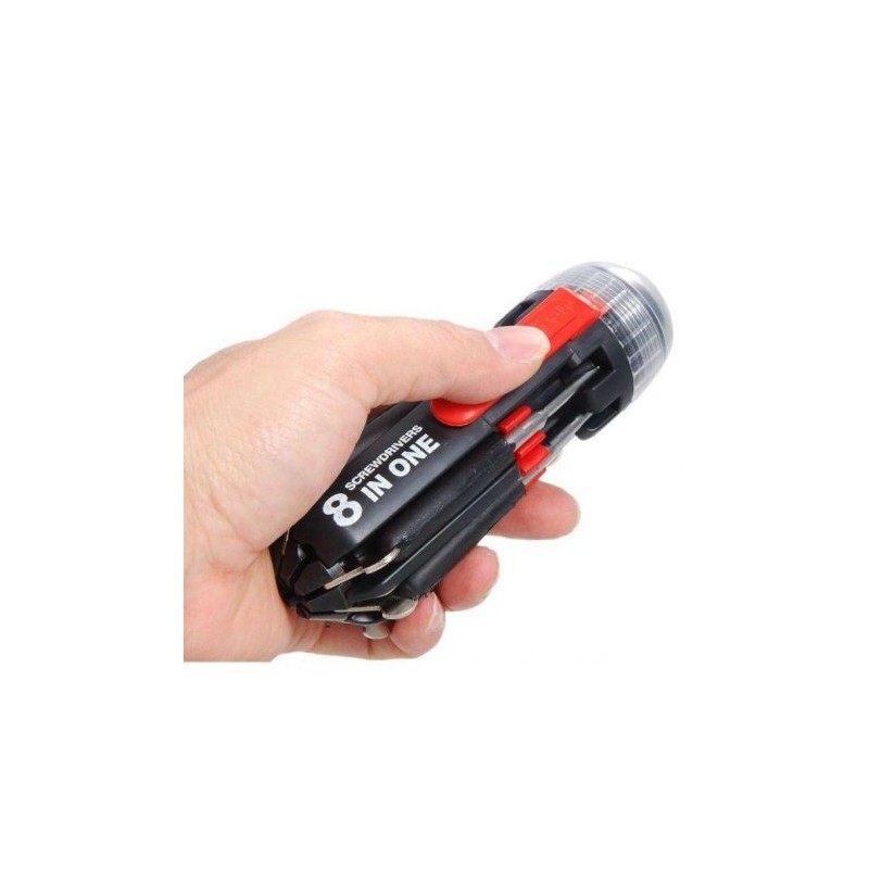 - Уредът комбинира удобен ръчен инструмент с набор от 7 различни отвертки и функция за осветяване.