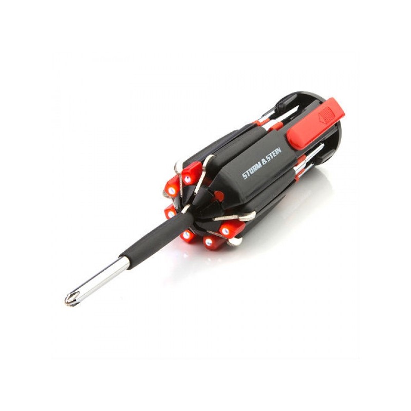 Мултифункционален уред фенер в комплект със сгъваеми отвертки.