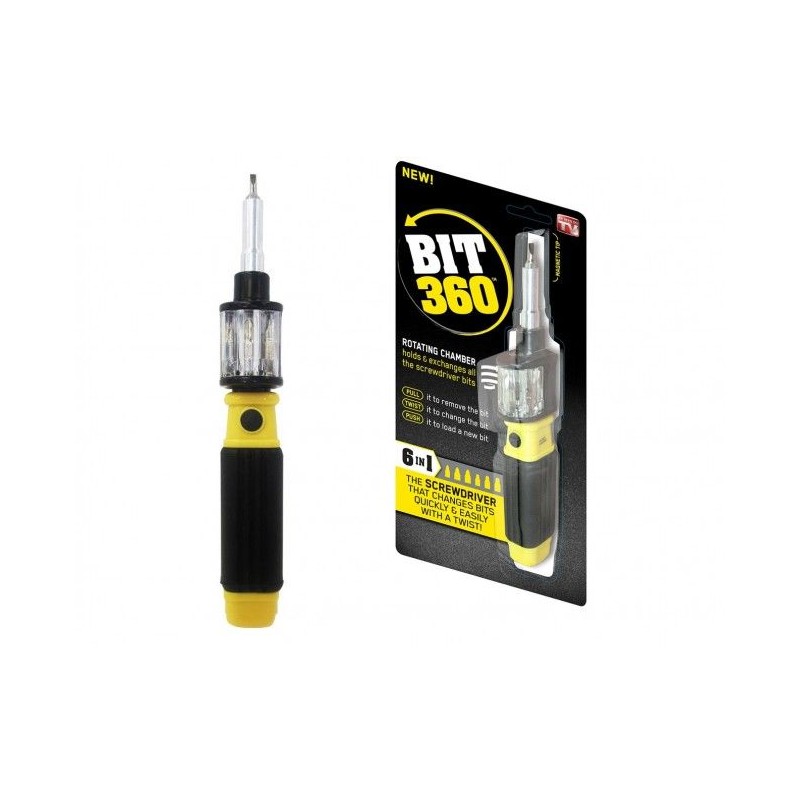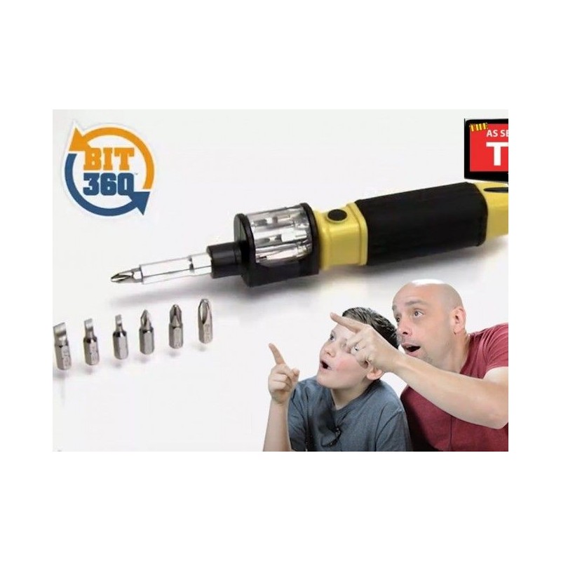 6 в 1 отверка - автомат BIT360 с 6 вградени накрайника - няма как да ги загубиш.