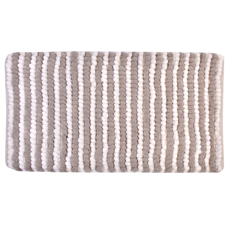 Изтривалка за баня, изработена от висококачествени материали в бежово-бяло райе.