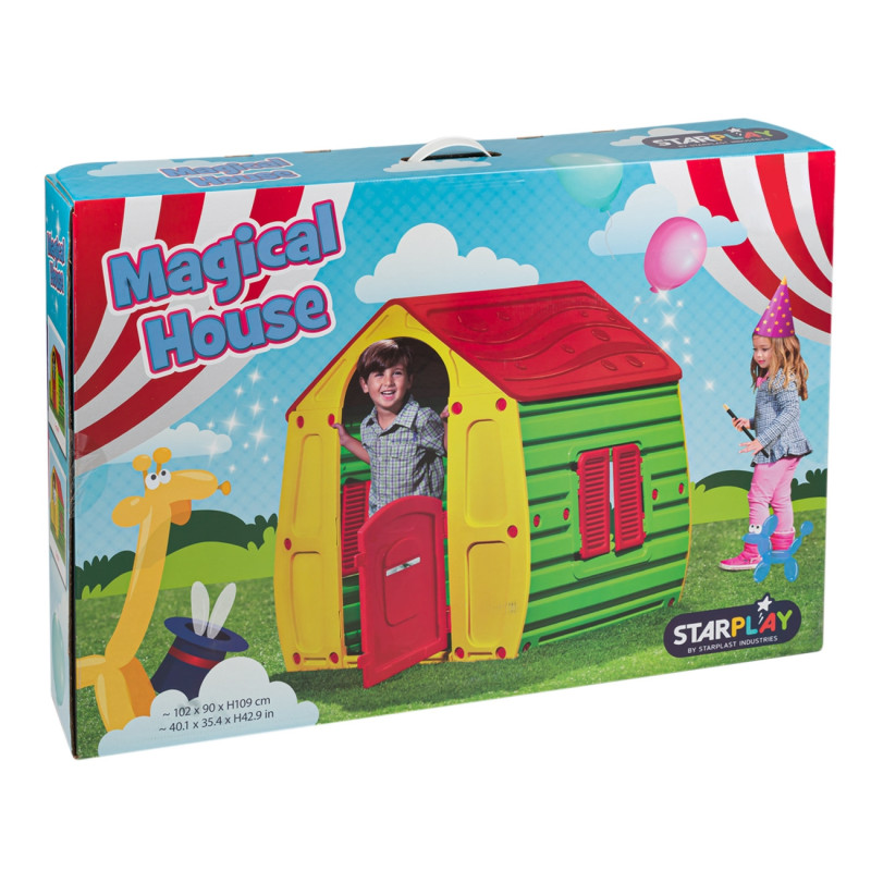 Детска магическа къщичка за игра, изработена от висококачествена пластмаса в ярки цветове с врата и прозорчета.