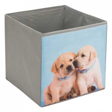Кутия за съхранение на дрехи, изработена от полиестер в сив цвят с картинка на кученца.