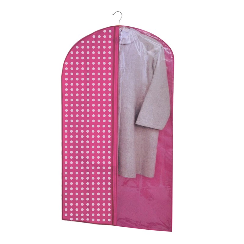 Θήκη για κουστούμια, σε φούξια χρώμα με ένα μέρος διάφανο για να βλέπετε το περιεχόμενο. Προφυλάσσει τα ρούχα από τη σκόνη μέχρι την επόμενη φορά που θα τα χρησιμοποιήσετε.