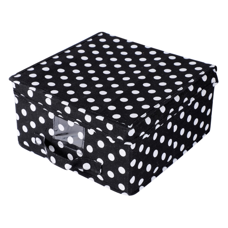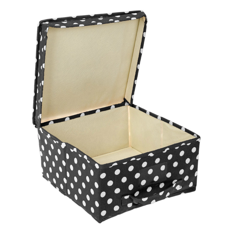 Κουτί Αποθήκευσης με Καπάκι Υφασμάτινο Μαύρο Λευκό Πουά 30x30x16cm