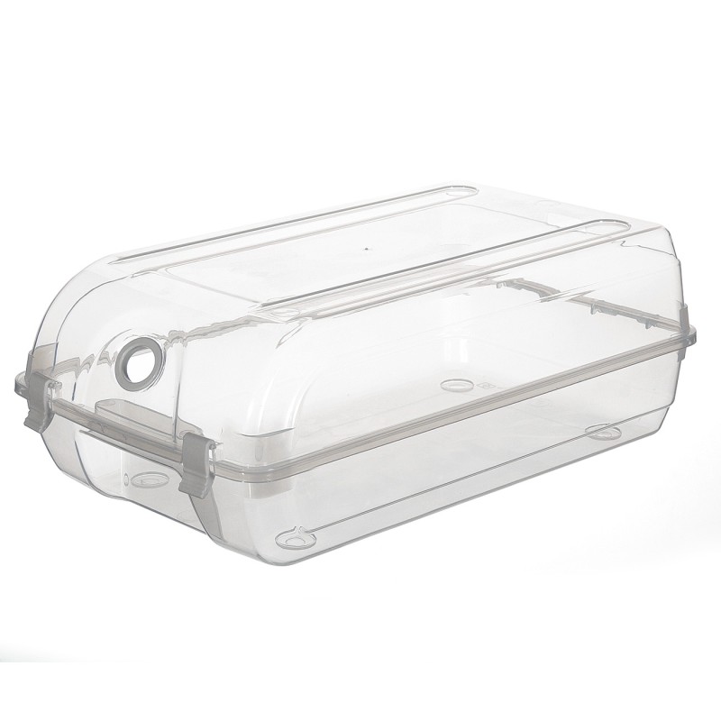 Кутия за съхранение на мъжки обувки, изработена от висококачествена прозрачна пластмаса с удобни закопчалки.