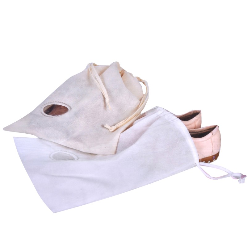 Комплект от 2 броя торбички за съхранение на обувки с практични връвчици и кръгъл отвор за преглеждане на съдържанието.