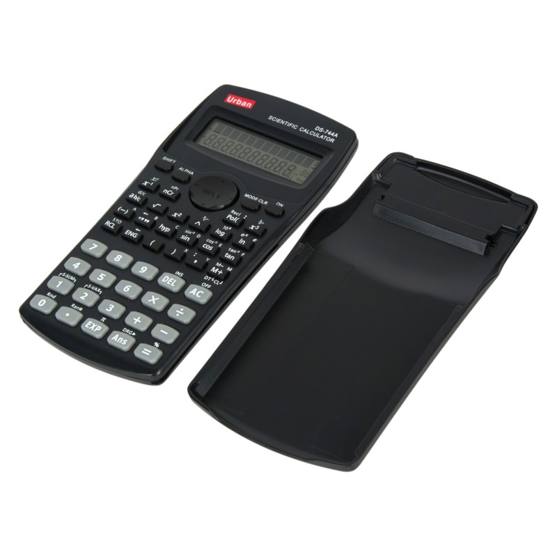Черен научен калкулатор "URBAN" с 283 функции, двуредов дисплей и защитен черен калъф.