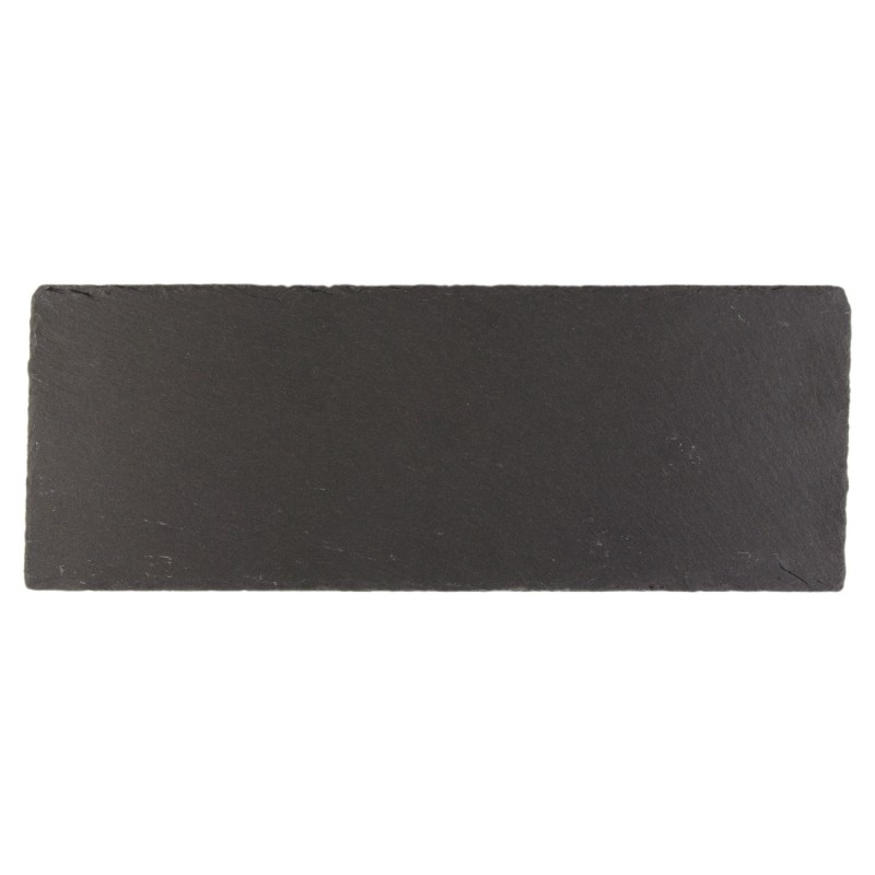 Правоъгълна каменна плоча за сервиране, изработена от обработена естествена скала - шисти в цвят на вулканичен камък.