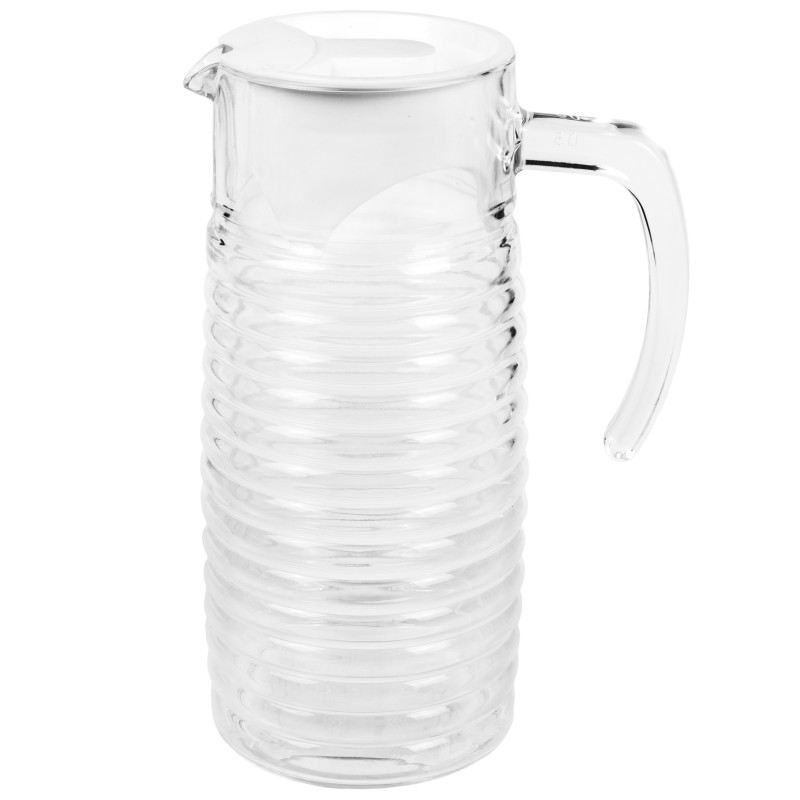 Кана, изработена от качествено прозрачно стъкло с релефно райе и практичен капак.