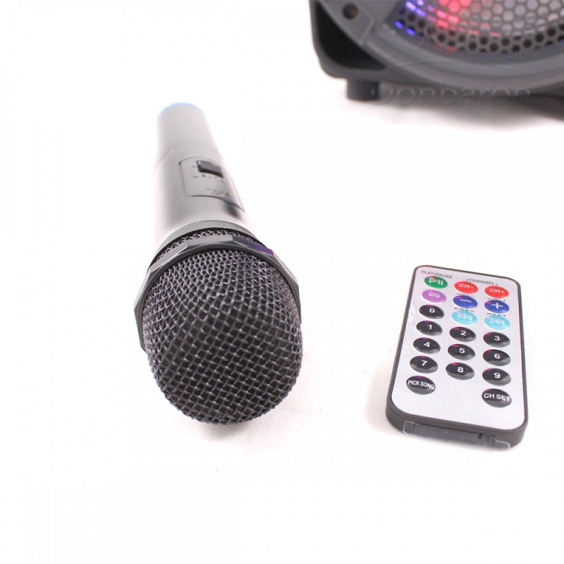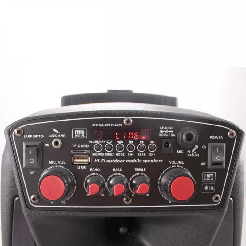 Ефектна и мощна тонколона, идеална за озвучаване на домашни партита, за заседателни зали, физкултурни салони и др. Особено атрактивна за улични музиканти, заради впечатляващите LED светлини и колелцата, за по-лесно придвижване на тонколоната.