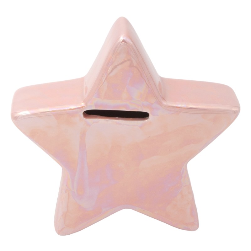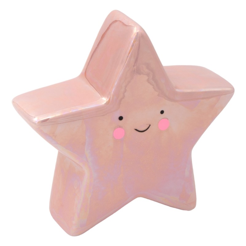 Детска спестоввна касичка за монети във формата на усмихната звездичка в бежов цвят.