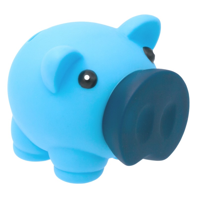 Детска спестовна касичка за монети във формата на симпатично синьо прасенце с капак - муцуната на прасенцето.
