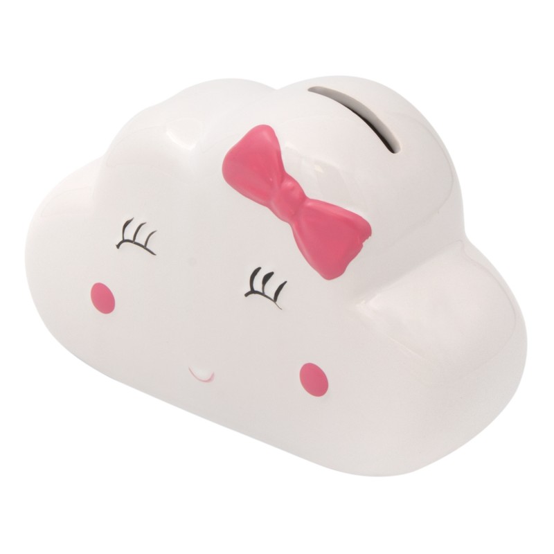 Детска касичка за монети във формата на усмихнато облаче с панделка.