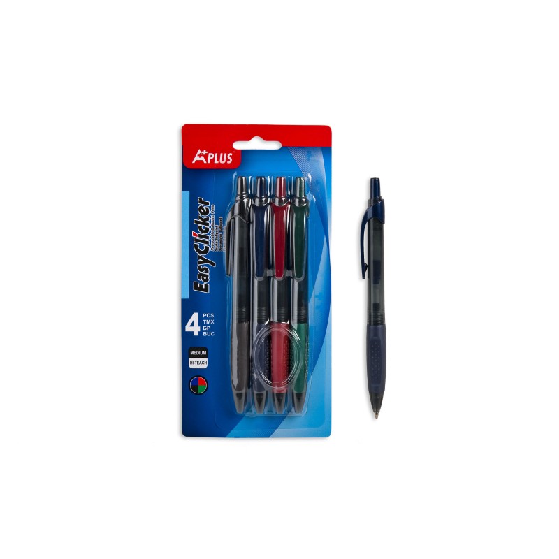 Комплект от 4 броя автоматични химикалки с 4 цвята мастило - синя, черна, червена и зелена за прецизно писане върху хартиена повърхност.