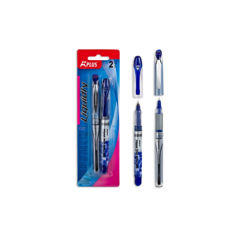 Химикалка и писалка в сребрист цвят с предпазна капачка и синьо течно мастило за гладки и плътни линии върху хартия.