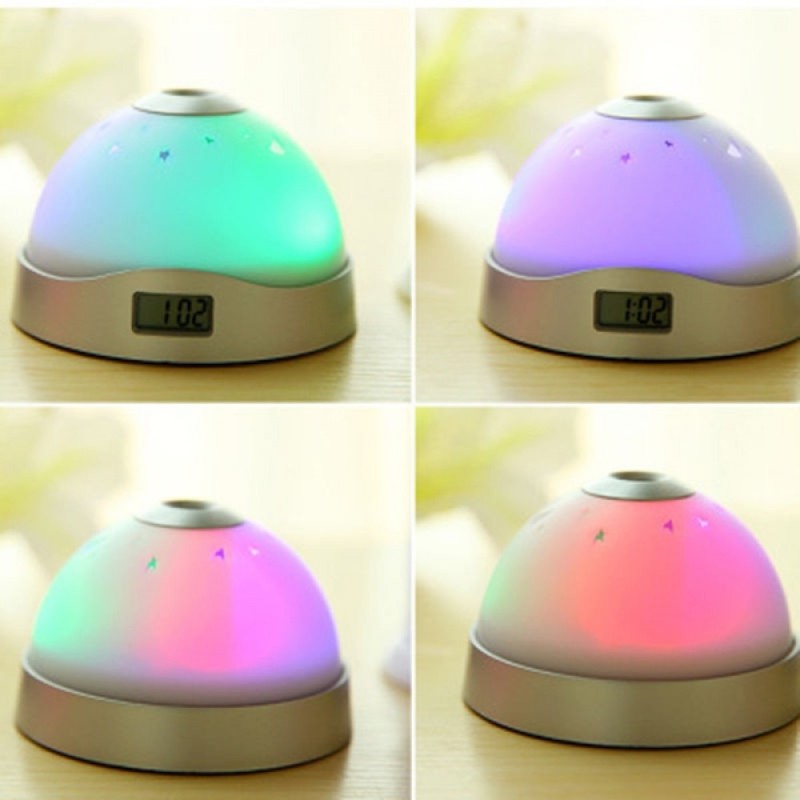 Led часовнкиът прожектира звездички по стените и показва часа на тавана! С тази забавна новост винаги ще знаете колко е часът, колкото и да е тъмно в стаята. Само с едно натискане върху часовника времето веднага се показва в помещението чрез светлината и проектора в горната част на самия часовник. Открийте по-приятния начин да следите времето.