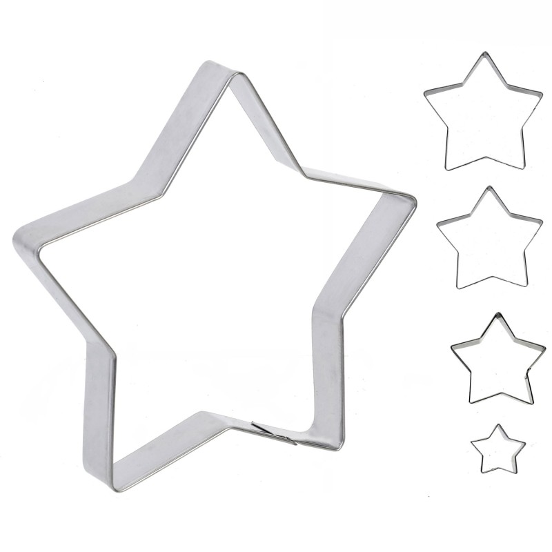 Комплект от 5 броя метални форми за сладки и курабийки във формата на Коледна звезда с различни размери.