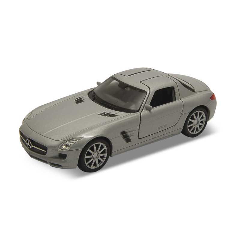 Детска играчка лек автомобил Мерцедес SLS AMG в сив цвят с метален корпус и отварящи се врати.