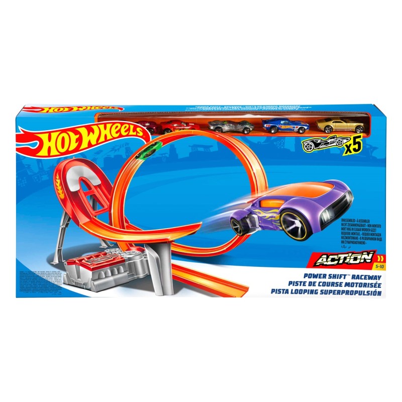 Автомобилна писта HOT WHEELS с 5 състезателни автомобила в различни ярки цветове.