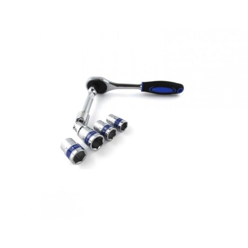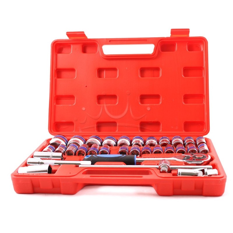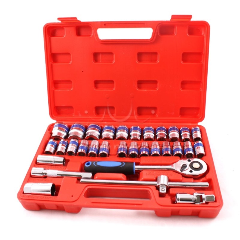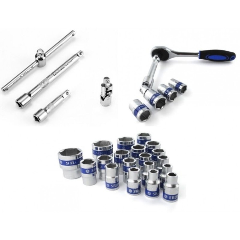 Комплект гедоре с вложки, за направата на които е използвана първокласна, висококачествена стомана. Стабилни, здрави и надеждни инструменти: вложки, тресчотка, върток, кардан подредени в удобно кауфарче за съхранение и пренасяне.